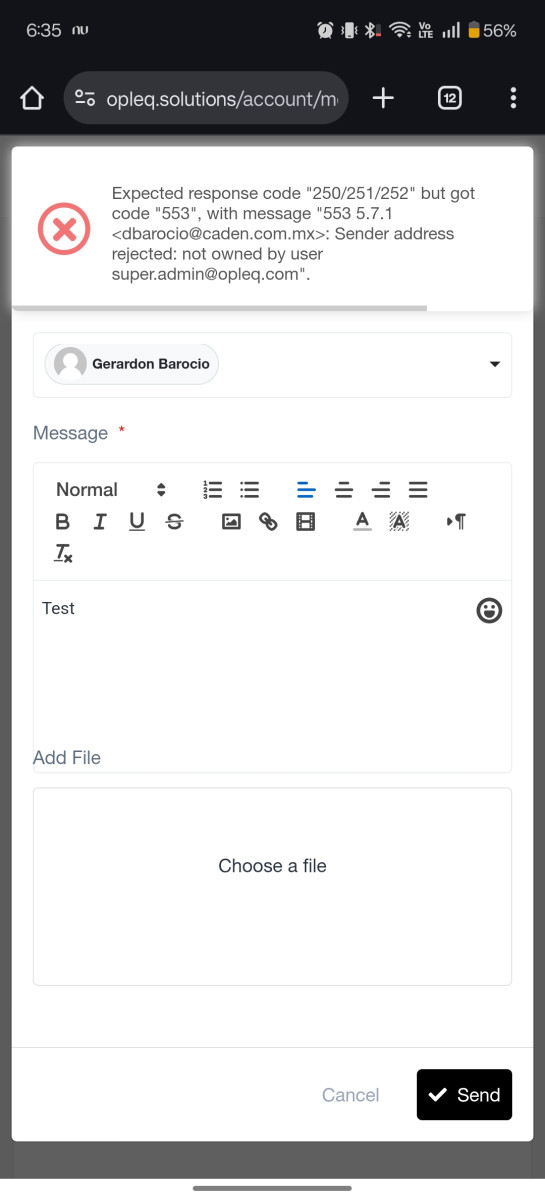 GerardoBarocio I'm receiving that error in any communication a client wants to do, can you tell me how to fix it?